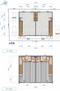 | 備考 | 坪単価約10,296円、3軒有り(A棟01・A棟02・B棟02)、床面積:1F 31.14㎡ 2F 26.79㎡、鍵交換:リモコン1個渡し(データ書き換え料は都度見積)・リモコン1個追加2万円(税別)、短期解約違約金有 2年以内:総賃料2ヶ月分、外部・躯体変更の改装は不可、内部改装は管理会社の承認必須、造作買取請求権の放棄、退去は3か月前予告、すべての照明器具・設備機器の運用・メンテナンスは借主負担、現状渡し。 |