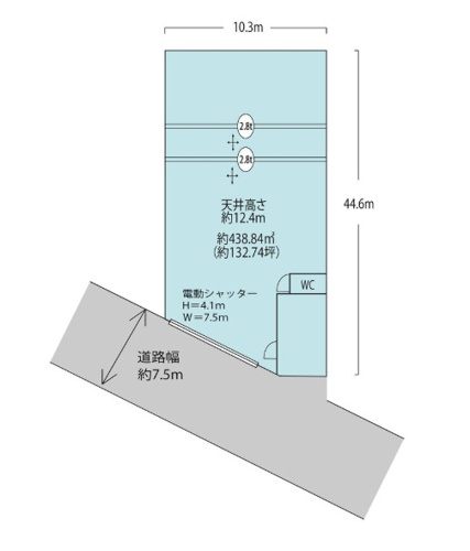 約132.74坪 3階建貸倉庫・事務所1階部分 2.8tクレーン2基あり(残置物) 工業地域